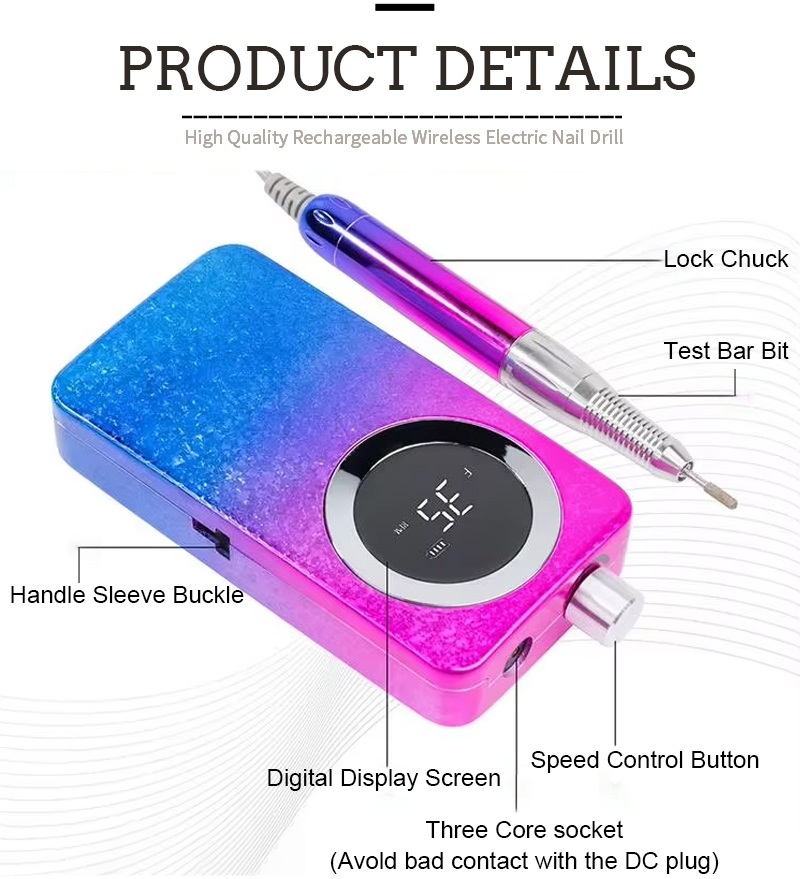 Această mașină de găurit electrică de unghii de 30.000 rpm are 2 culori din care să aleagă, negru/alb/gri/albastru/roșu/roz/portocaliu, culori colorate.