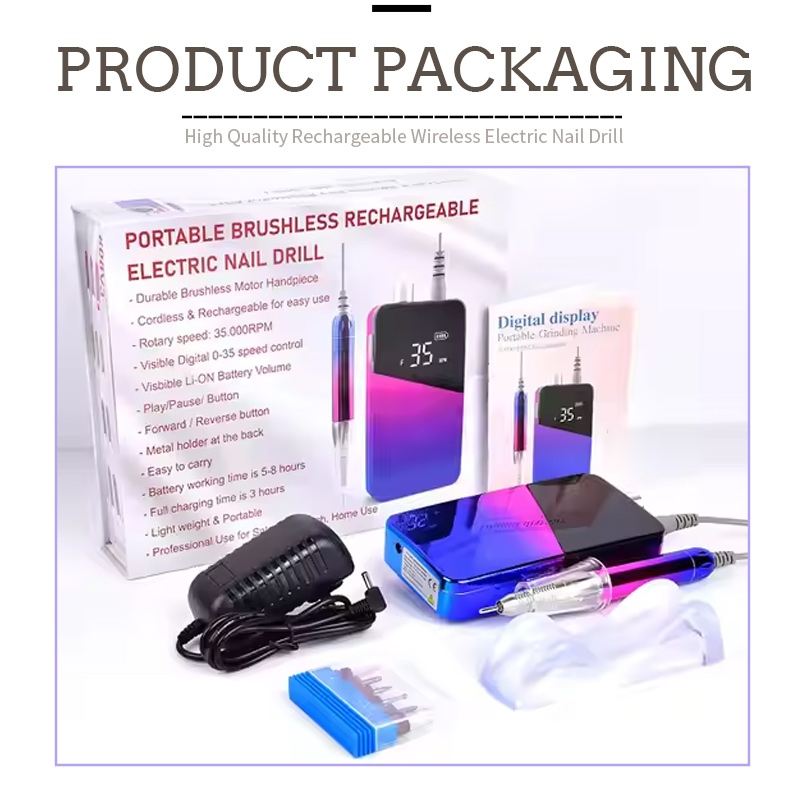 Conținutul acestui pachet de găurit electric pentru unghii de 30.000 rpm are un produs stilou de șlefuit, un cablu de încărcare USB, un manual de instrucțiuni pentru produs și o cutie ușoară și portabilă.