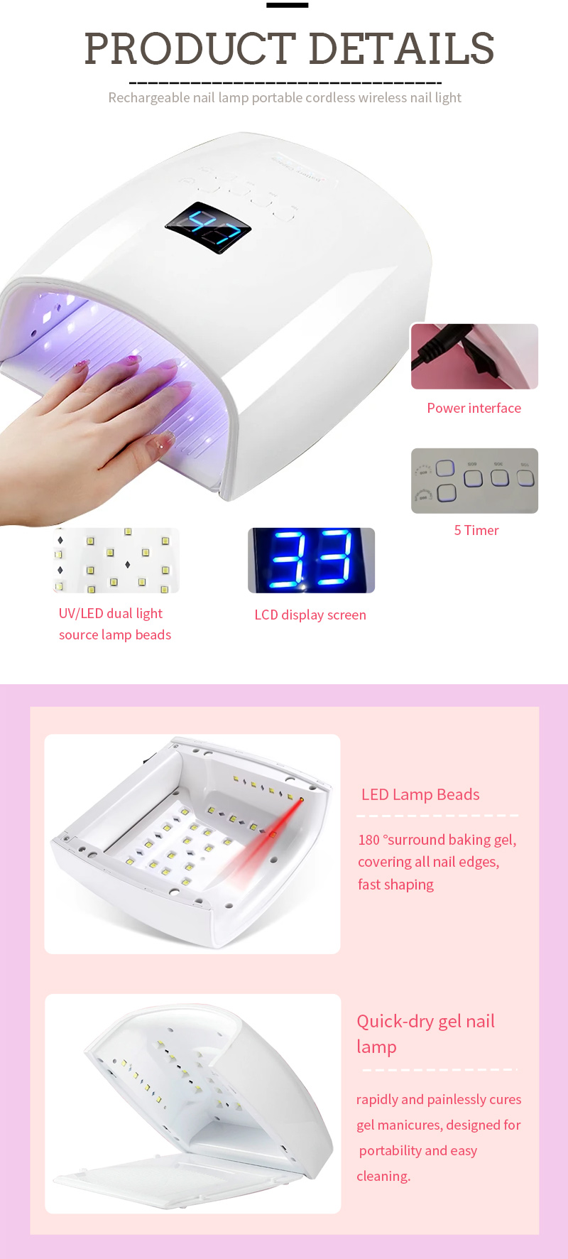 Produsul asigură o uscare uniformă a adezivului fără contracție. Sursele sale de lumină duale asigură o încălzire blândă pentru a preveni decolorarea mâinilor și oboseala ochilor, potrivite atât pentru mâini, cât și pentru picioare, oferind rezultate de uscare remarcabil de rapidă.
