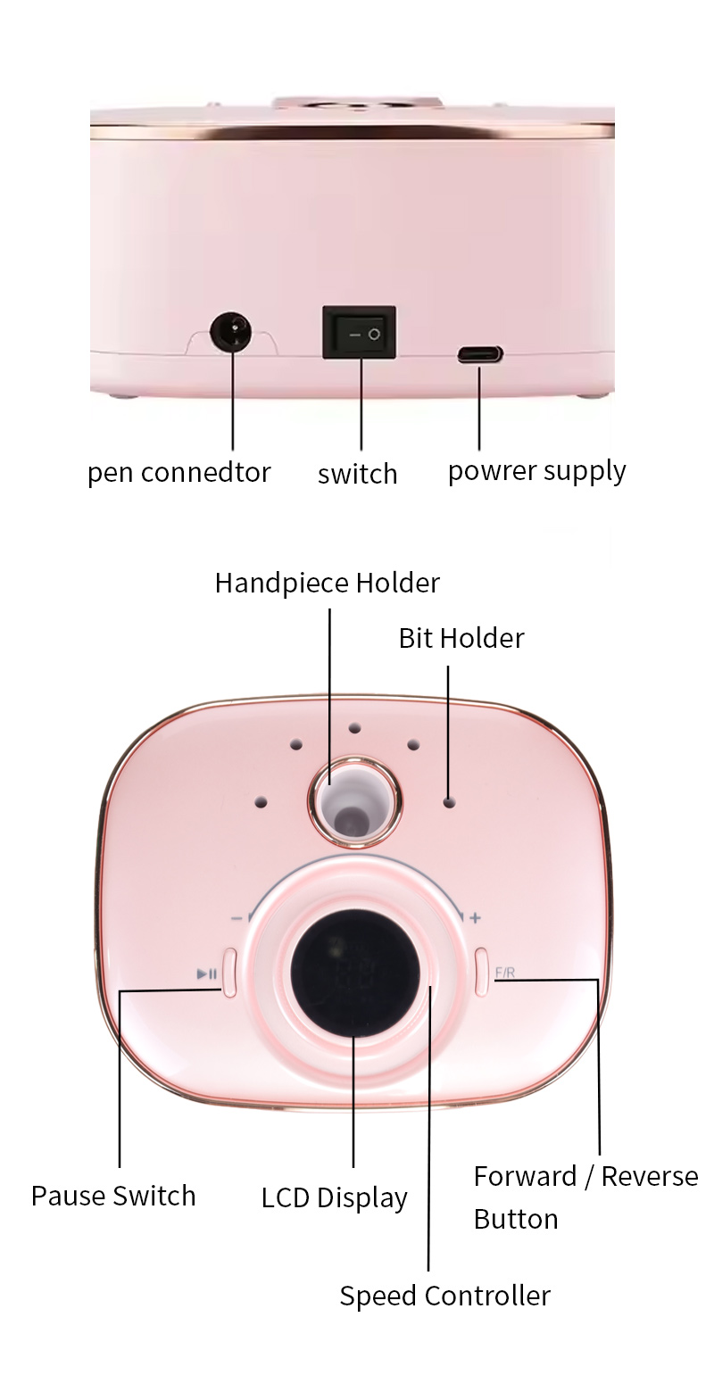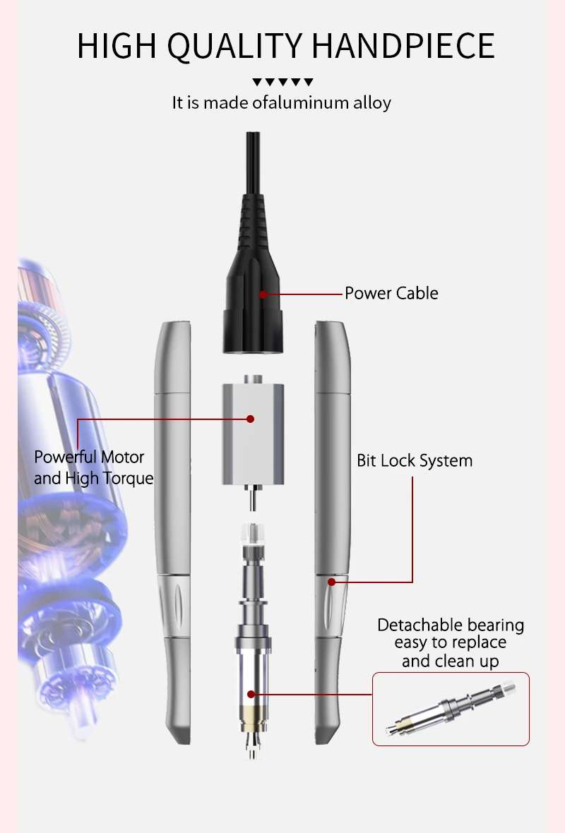 Mașină de găurit pentru unghii Piesa de mână nu este ușor de deteriorat 65w 35000rpm