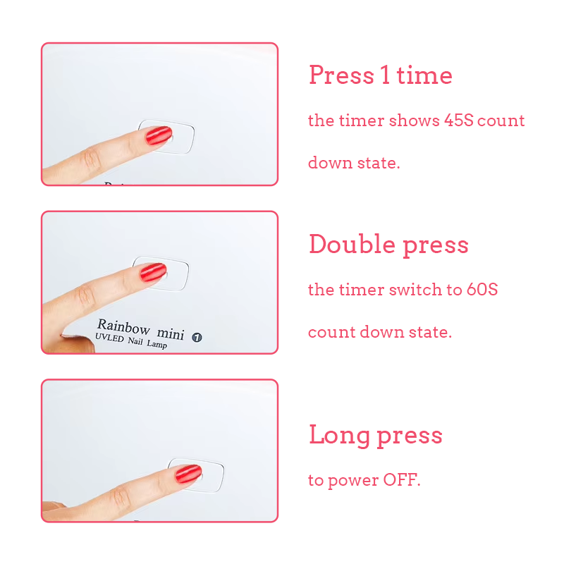 Nou stil curbat de capturi de cap curbate cu unghii de unghiiShenzhen Ruina Optoelectronics Co., Ltd., în calitate de producător, furnizor și exportator lider al Chinei de lampă compactă pentru uscare pentru unghii cu gel, susține în mod constant filosofia de a urmări calitatea perfectă. Acest angajament a adus lămpilor noastre de unghii cu adeziv UV de uz casnic încrederea numeroșilor clienți. Design excepțional, materii prime premium, performanță remarcabilă și prețuri extrem de competitive - acestea sunt exact ceea ce se așteaptă fiecare client și ceea ce oferim noi. Desigur, serviciul post-vânzare complet este la fel de indispensabil.