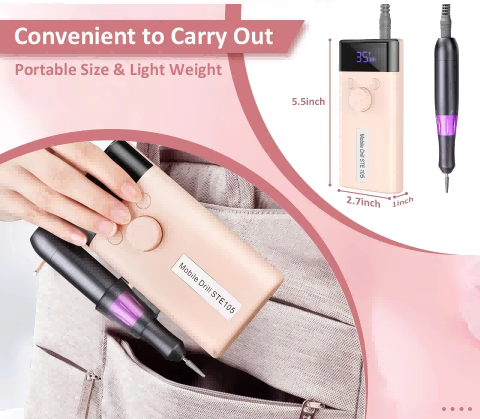 Designul afișajului acestui șlefuitor de unghii electric de 30.000 rpm are un comutator pornit/oprit și rotație înainte/înapoi pentru un total de activare cu un singur buton, o priză de încărcare rapidă în partea de jos, o priză de foraj înlocuibilă în partea de sus și o viteză reglabilă în trei poziții pentru a satisface o varietate de nevoi.