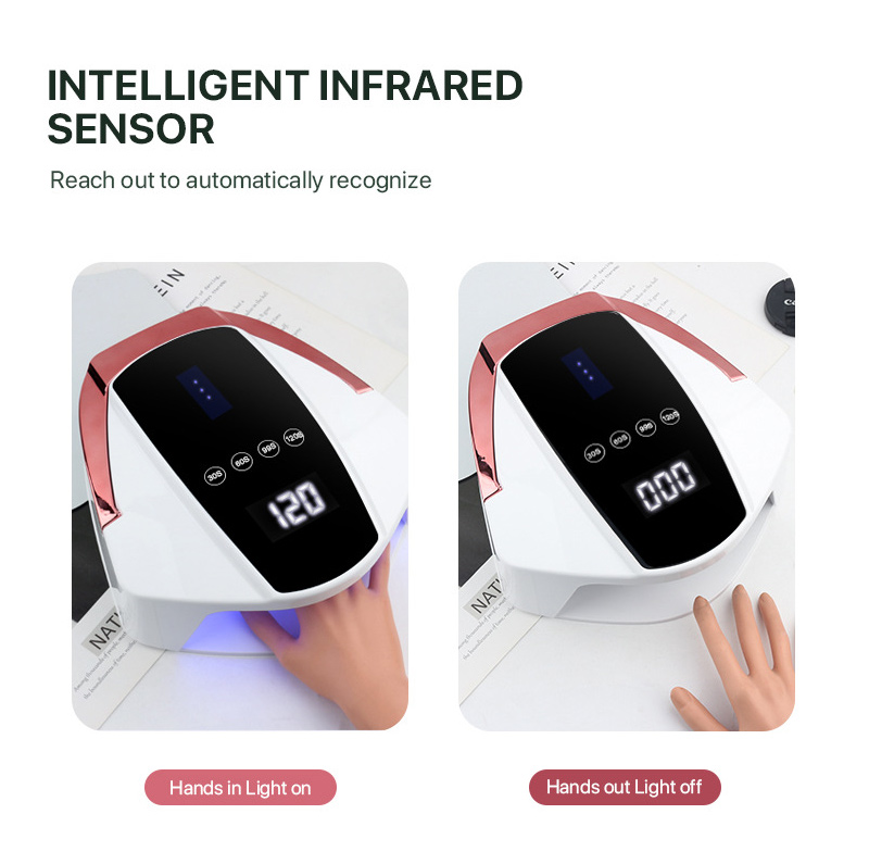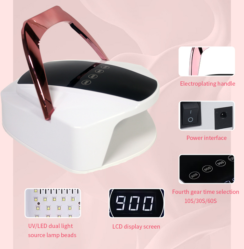 Produsul asigură o uscare uniformă a adezivului fără contracție. Sursele sale de lumină duale asigură o încălzire blândă pentru a preveni decolorarea mâinilor și oboseala ochilor, potrivite atât pentru mâini, cât și pentru picioare, oferind rezultate de uscare remarcabil de rapidă.