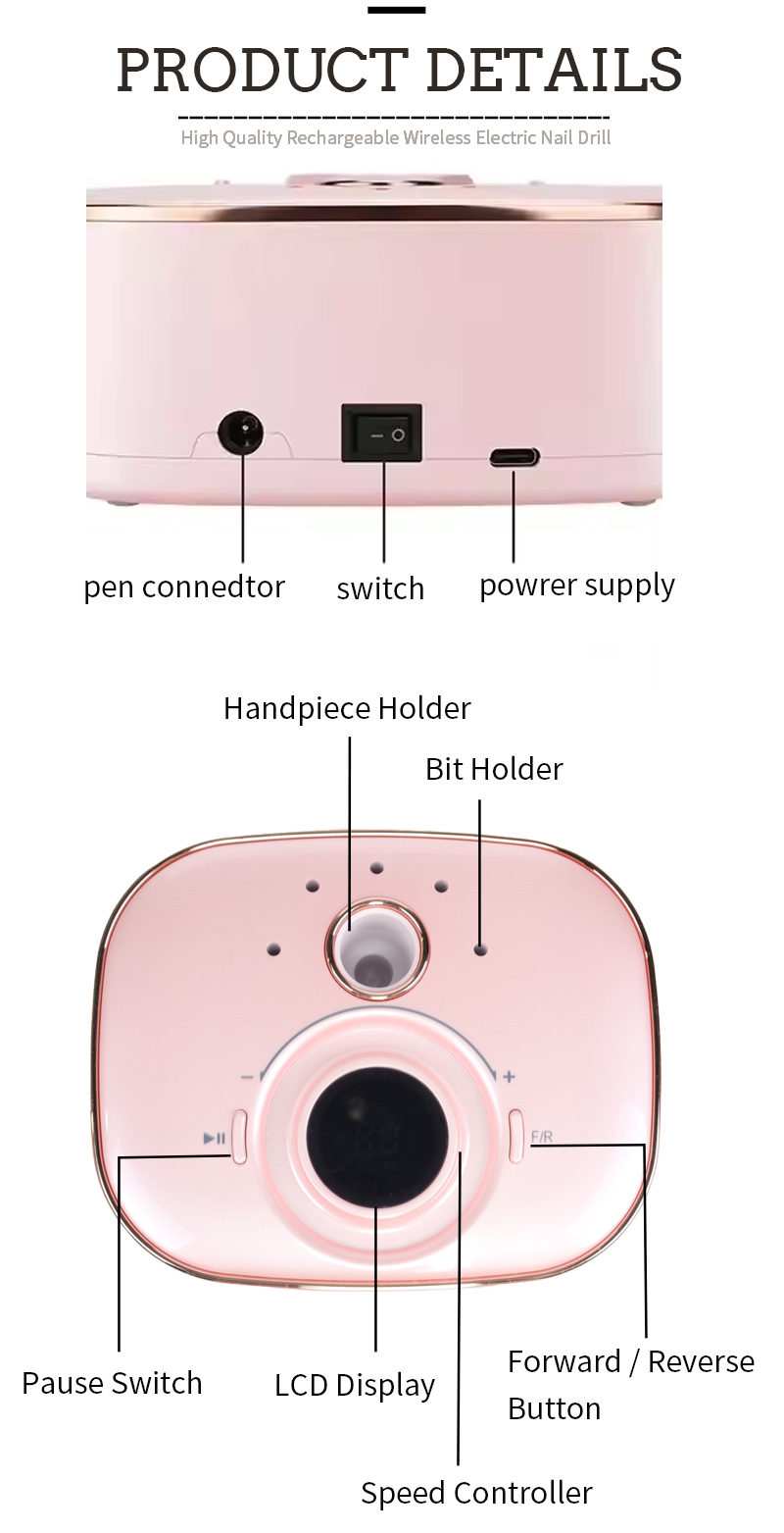 Mașină de găurit unghii fără fir reîncărcabilă Puternic 45w 40000rpm