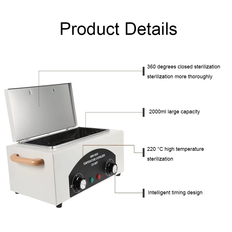 Acest sterilizator generează în primul rând căldură printr-un inel de încălzire, utilizând temperaturi ridicate pentru dezinfecție.