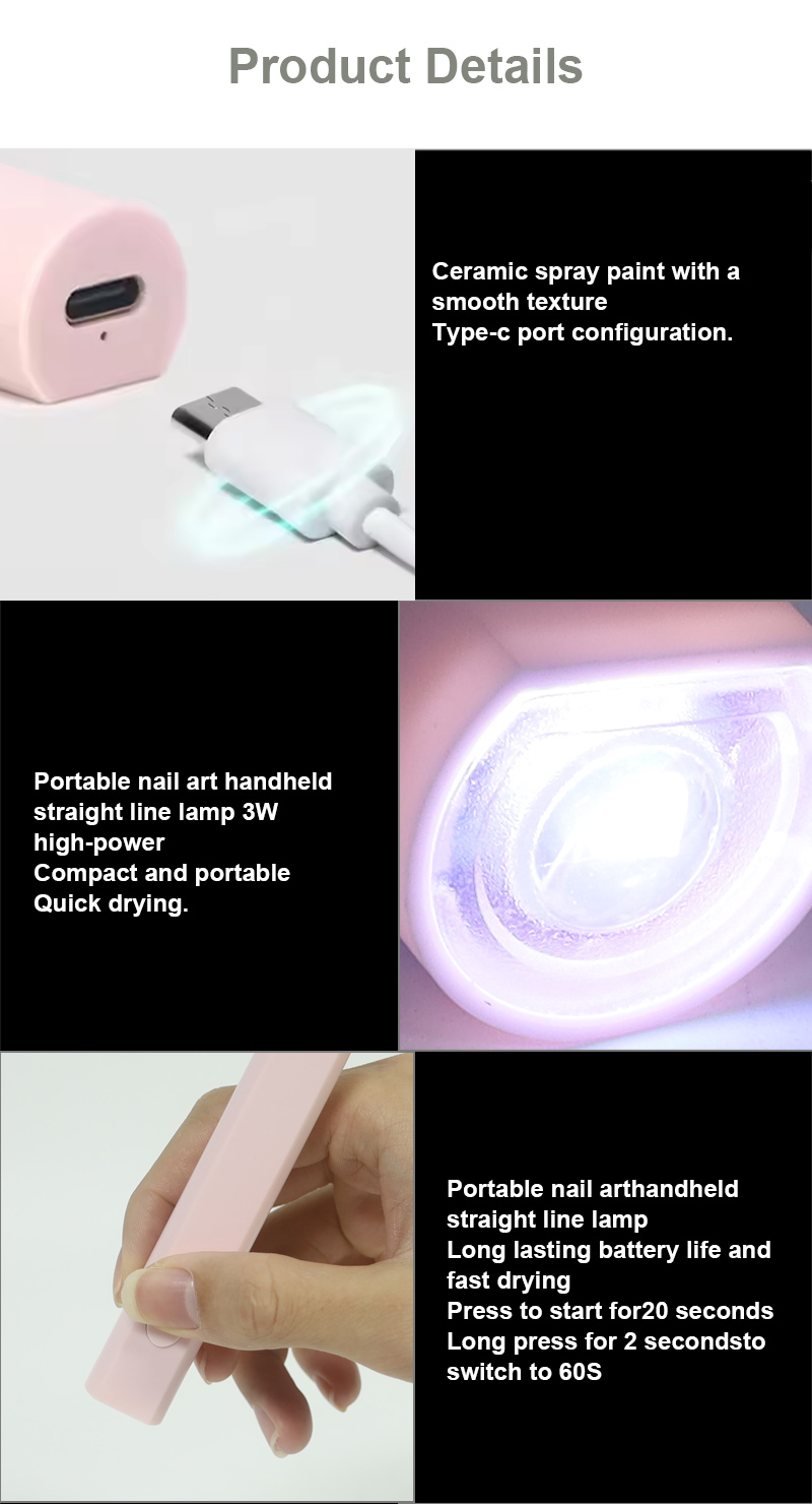 Produsul asigură o uscare uniformă a adezivului fără contracție. Sursele sale de lumină duale asigură o încălzire blândă pentru a preveni decolorarea mâinilor și oboseala ochilor, potrivite atât pentru mâini, cât și pentru picioare, oferind rezultate de uscare remarcabil de rapidă.