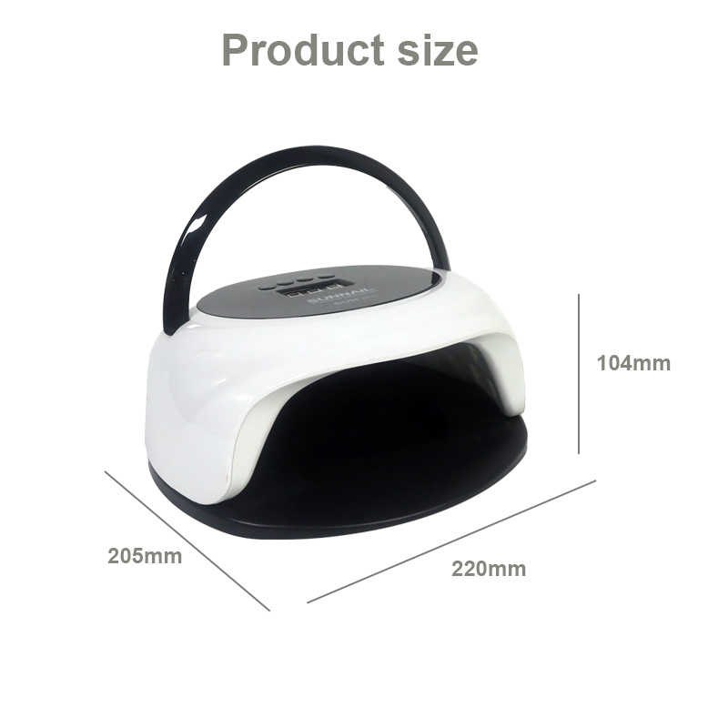 Dimensiunile lămpii de uscare a unghiilor cu funcție de senzor automat sunt de 205 mm în lungime, 220 mm în lățime și 104 mm în înălțime, cu o capacitate mare și posibilitatea de a folosi atât mâinile, cât și picioarele, ceea ce este foarte convenabil.