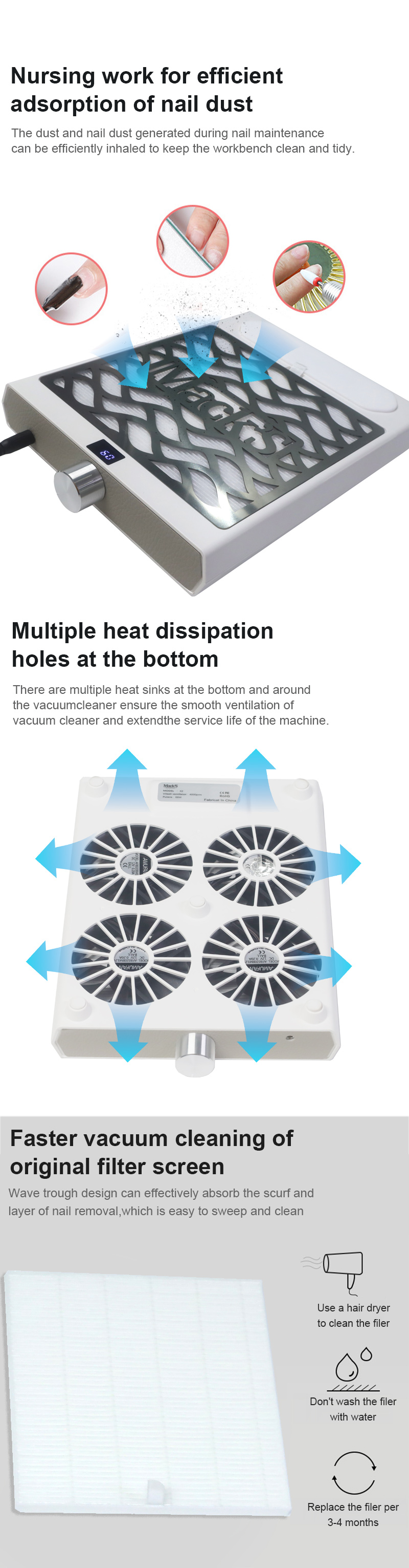 Produsele cu absorbție puternică a resturilor de unghii nu scurge praf, mențin blatul curat și ordonat, aspirarea rapidă nu scurge praf de mare putere mai eficient.