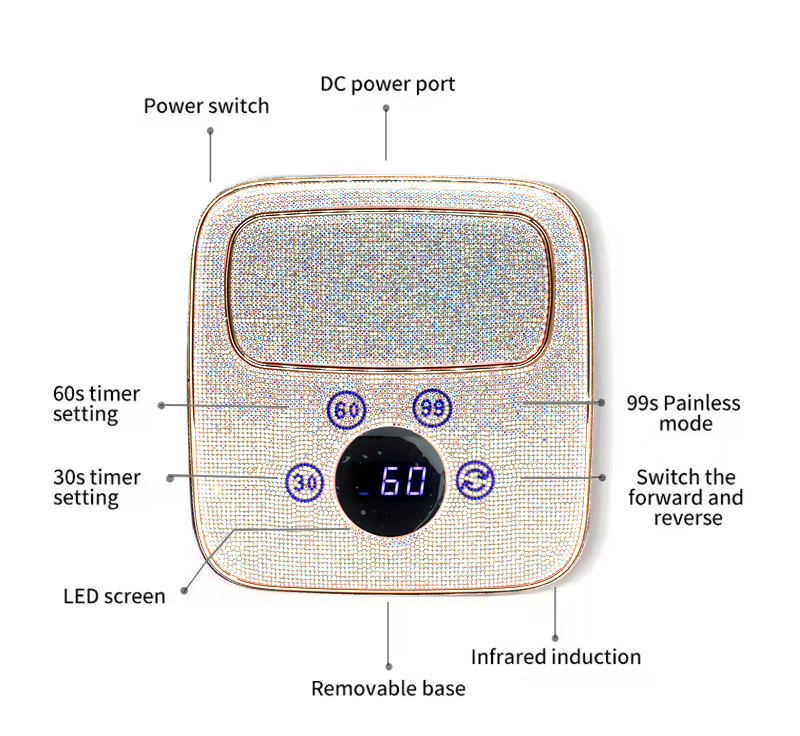 2, Versiunea profesională de coacere a unghiilor reîncărcabile 90W echipată cu o bază non-alunecare.
