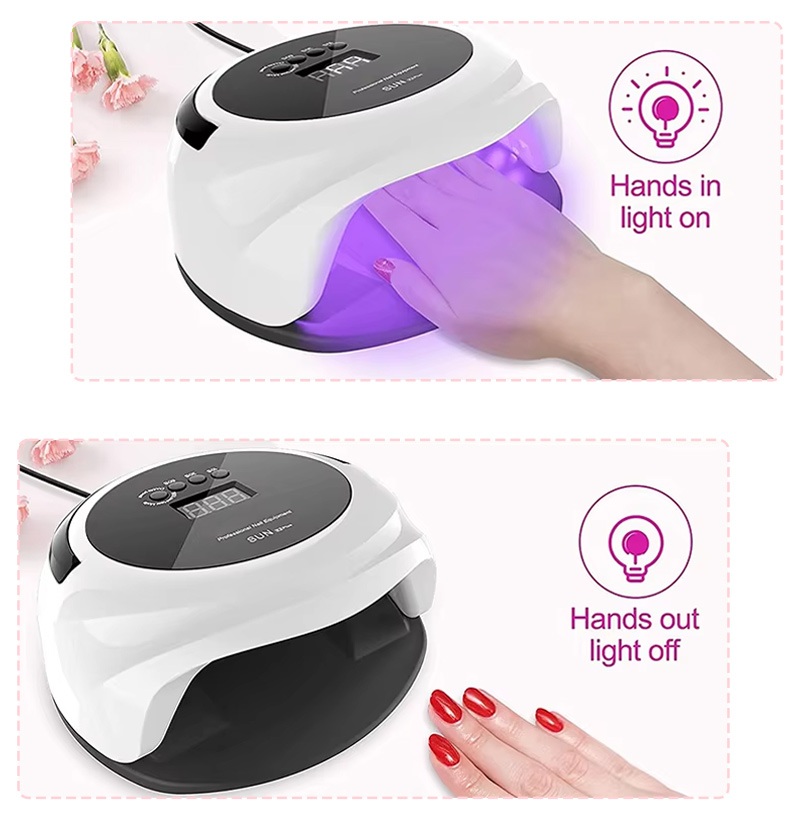 Produsul asigură o uscare uniformă a adezivului fără contracție. Sursele sale de lumină duale asigură o încălzire blândă pentru a preveni decolorarea mâinilor și oboseala ochilor, potrivite atât pentru mâini, cât și pentru picioare, oferind rezultate de uscare remarcabil de rapidă.