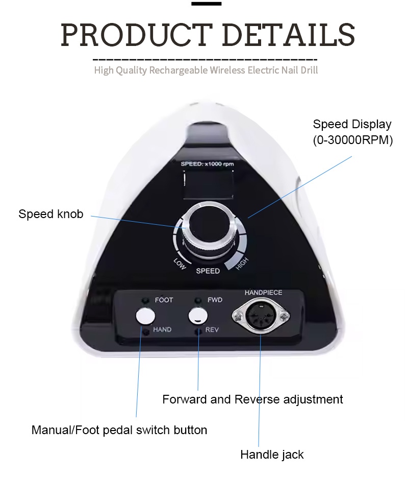 | Mașină portabilă profesională de găurit unghii 35.000 RPM Prezentare generală |