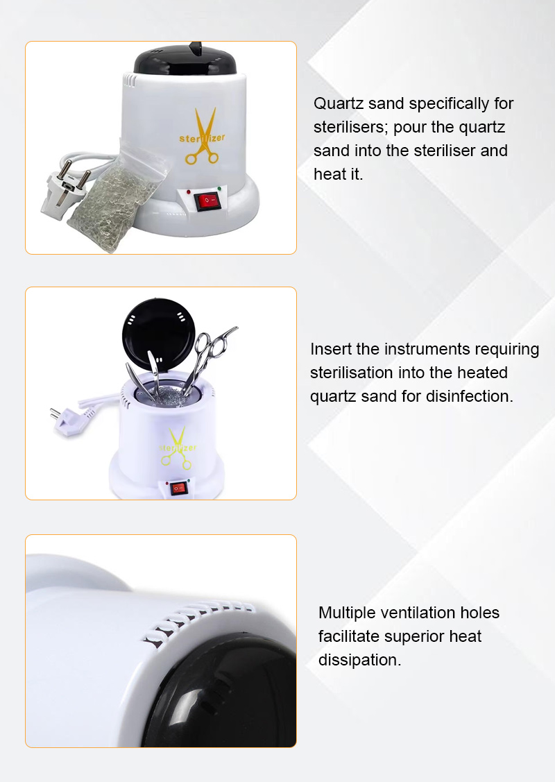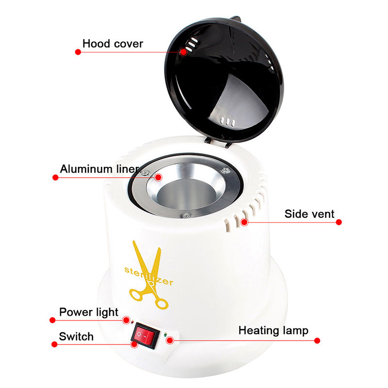 Acest sterilizator generează în primul rând căldură printr-un inel de încălzire, utilizând temperaturi ridicate pentru dezinfecție.