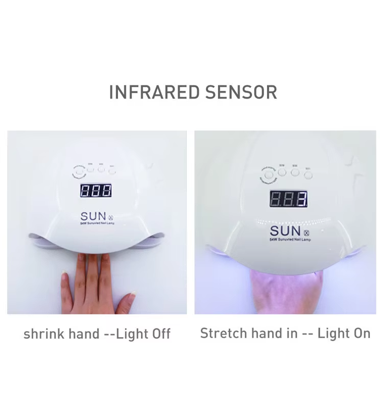Lampa pentru unghii cu gel cu uscare rapidă dispune de tehnologie de detectare inteligentă în infraroșu care se luminează automat atunci când mâinile se apropie și se stinge atunci când mâinile se îndepărtează - eliminând necazul apăsării repetate a butoanelor și economisind timp și efort. Adezivul de copt de mare putere nu necesită o așteptare îndelungată, economisind atât timp, cât și efort.