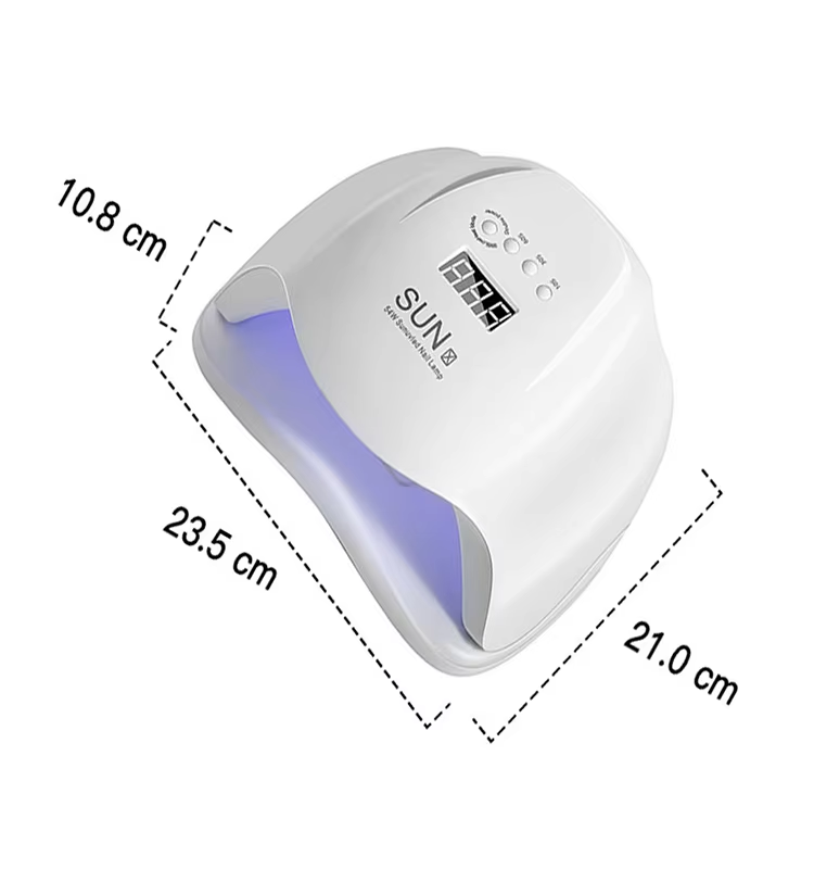 Lampa de unghii cu gel cu uscare rapidă are 235 mm lungime, 210 mm lățime și 108 mm înălțime, cu o capacitate mare și capacitatea de a folosi atât mâinile, cât și picioarele, ceea ce este foarte convenabil.