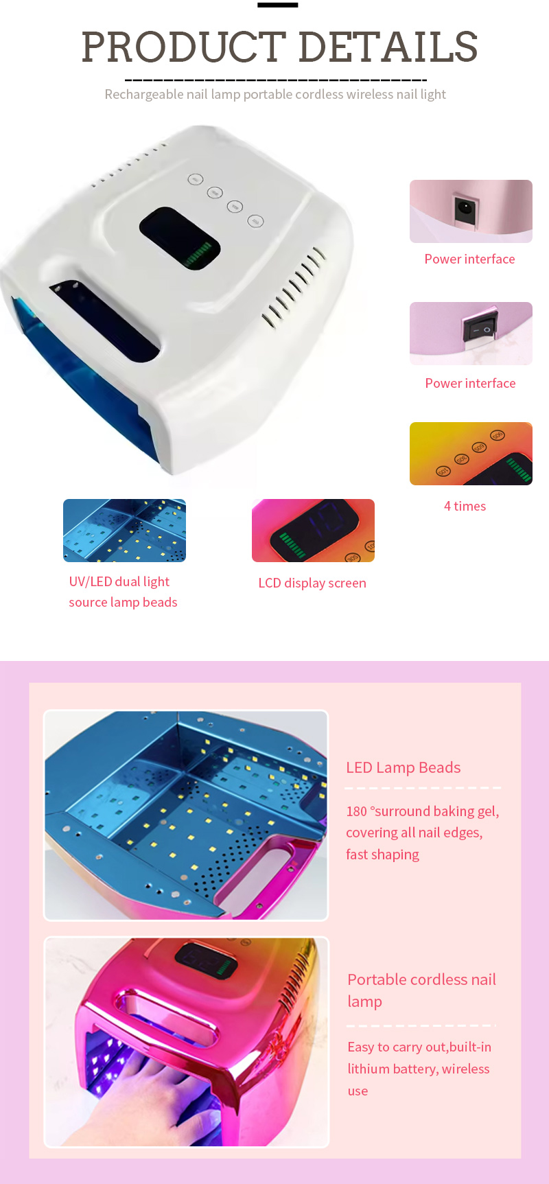 Lampă LED pentru uscător de unghii reîncărcabilă 86w portabilă