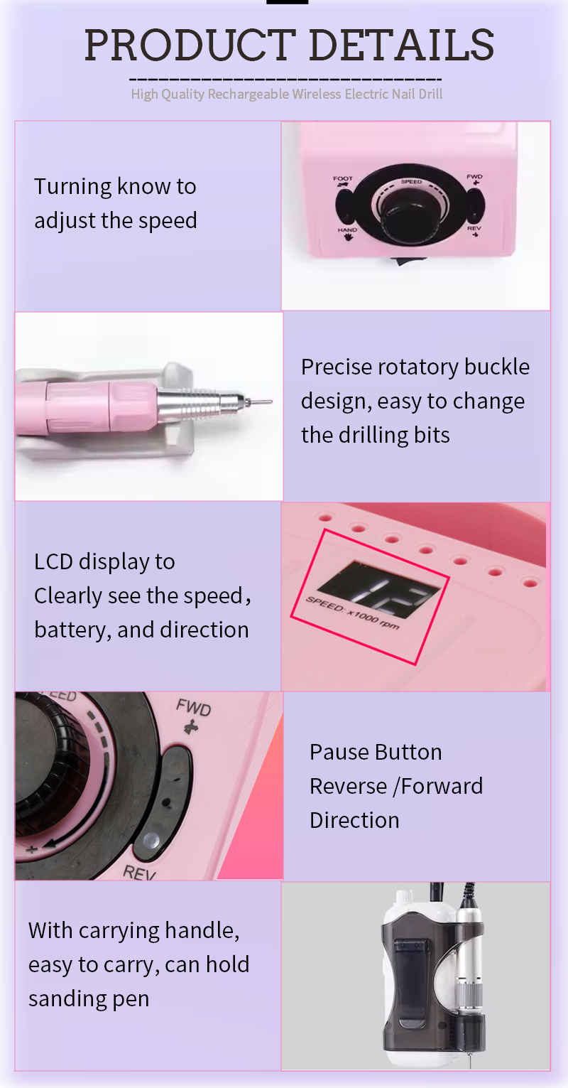 Set de gaurit unghii portabil electric cu motor puternic 65w 35000rpm