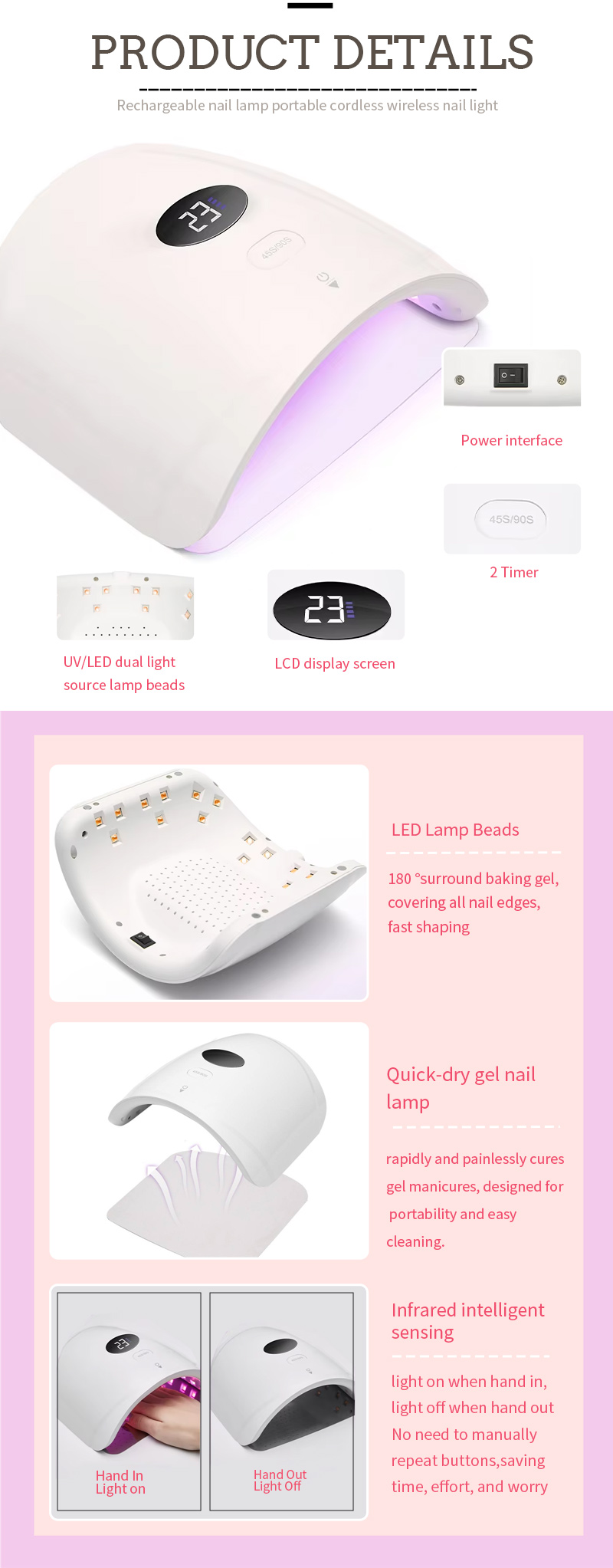 Lampă LED pentru uscător de unghii reîncărcabilă 86w portabilă