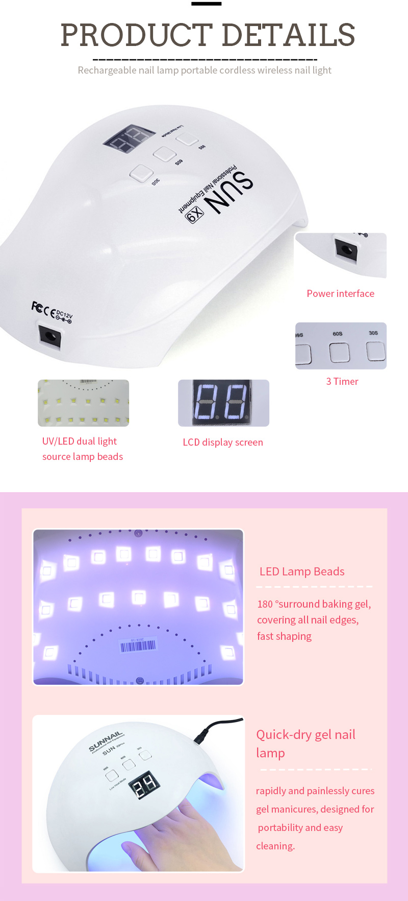 Lampă LED pentru uscător de unghii reîncărcabilă 86w portabilă
