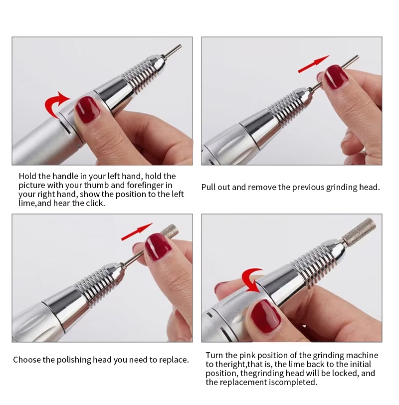 Această mașină de găurit electrică fără fir pentru unghii cu metoda de operare a burghiului de înlocuire de 35.000 rpm, adică conectarea și extragerea, ușor și convenabil, înlocuirea poate fi folosită după finalizare.