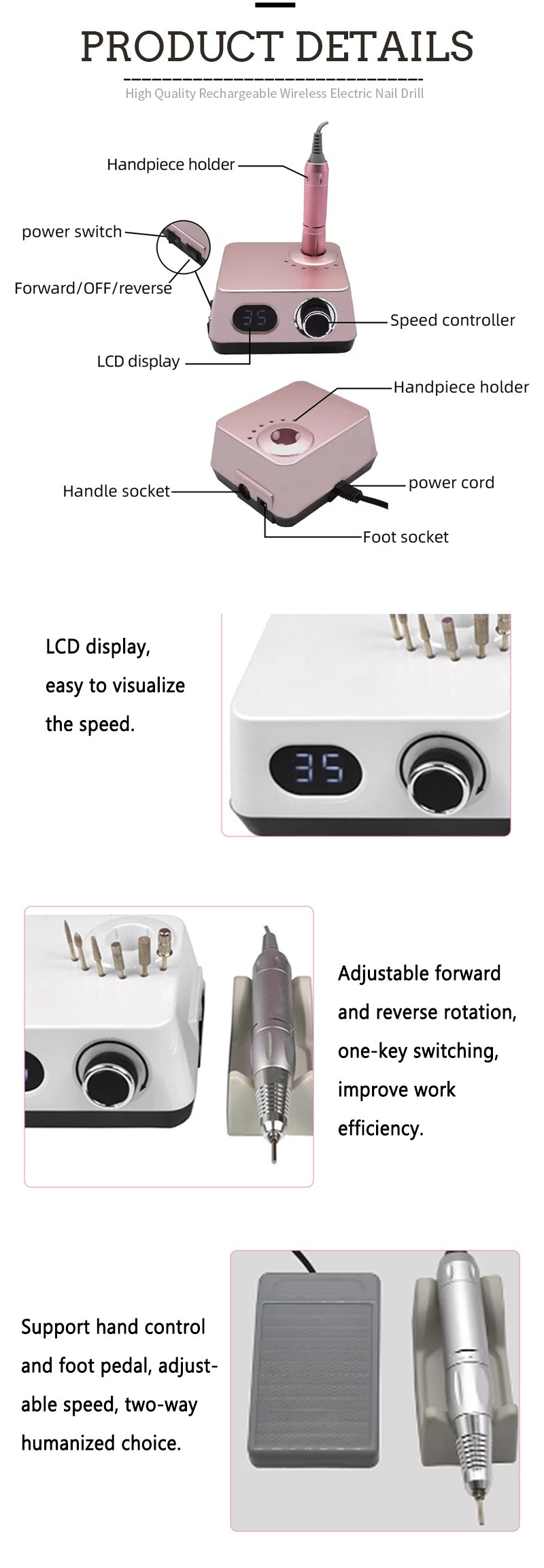 | Mașină de găurit electrică fără fir pentru unghii cu detalii de 35.000 RPM |
